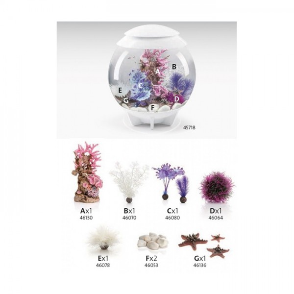 - BiOrb HALO 30 are doua versiuni de iluminat cu LED-uri. Versiunea standard cu care este echipat si acvariul din acest set, lumineaza chiar deasupra tubului de aer al acestuia. Luminile LED ale acvariului Halo sunt montate in interiorul capacului, circular , pentru a oferi continutului un aspect 3D -real.