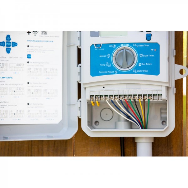 Programator irigatii cu capacitate de conectare online (cu ajutorul modulului WAND comercializat separat), cu functii rapide de programare si de optimizare a consumului de apa.